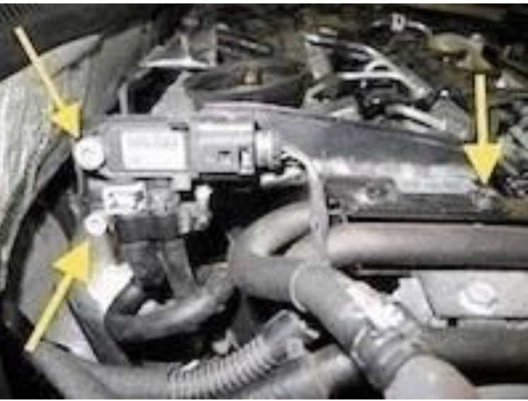 8) Remove the nut securing the upper bracket of the EGR canister to the turbo.