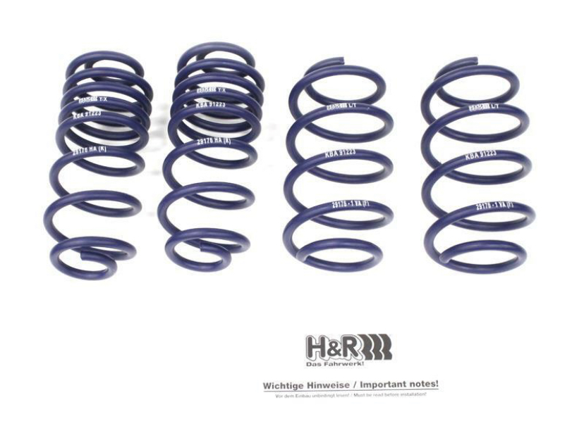 The H&R Sport Springs lower the vehicle center of gravity and reduce body roll for better handling as well as reducing the large arch gap that comes on the car from the factory